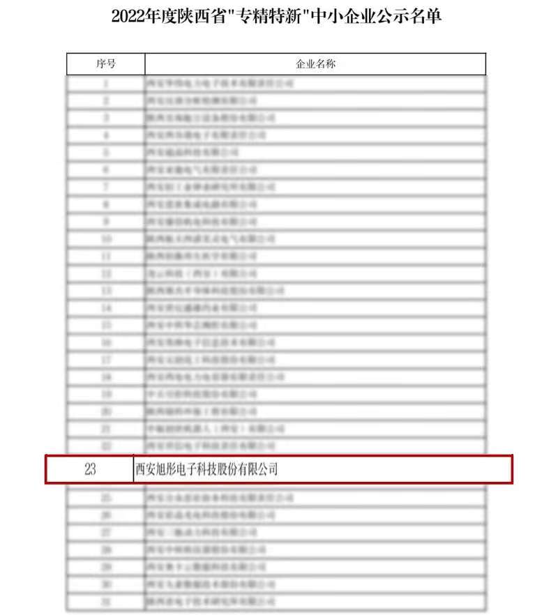 2022年6月28日,陜西省工業(yè)和信息化廳公布了《關于組織開展2022年陜西省“專精特新”中小企業(yè)申報工作的通知》,2022年第一批省級“專精特新”中小企業(yè)擬認定名單予以公示,西安旭彤電子科技股份有限公司榮獲陜西省“專精特新”中小企業(yè)認定。